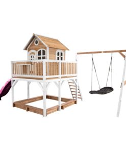 Das Spielhaus mit unbegrenzten Möglichkeiten! Siam ist ein gemütliches Spielhaus (Haus 10) mit einem großen Boden und einer Veranda auf einer hohen Unterkonstruktion und beinhaltet eine hohe Leiter und eine lange Rutsche. Die Balustrade macht das Ganze noch einzigartiger. Damit kannst du in die Umgebung spähen und du kannst Freunde und Freundinnen in der Ferne kommen sehen. Der Rahmen auf der Unterseite Klettern, rutschen, schaukeln und graben in einem Sandkasten sind deine Lieblingsbeschäftigungen. Und das ist mit dem Spielhaus Liam auch noch alles möglich. Damit wirst du an sonnigen Tagen garantiert stundenlang Spaß haben. t bereits für Sie erledigt. Sie brauchen nur noch die Fertigteile zusammenzubauen und fertig ist das Spielhaus!