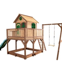 Das Spielhaus mit unbegrenzten Möglichkeiten! Siam ist ein gemütliches Spielhaus (Haus 10) mit einem großen Boden und einer Veranda auf einer hohen Unterkonstruktion und beinhaltet eine hohe Leiter und eine lange Rutsche. Die Balustrade macht das Ganze noch einzigartiger. Damit kannst du in die Umgebung spähen und du kannst Freunde und Freundinnen in der Ferne kommen sehen. Der Rahmen auf der Unterseite Klettern, rutschen, schaukeln und graben in einem Sandkasten sind deine Lieblingsbeschäftigungen. Und das ist mit dem Spielhaus Liam auch noch alles möglich. Damit wirst du an sonnigen Tagen garantiert stundenlang Spaß haben. t bereits für Sie erledigt. Sie brauchen nur noch die Fertigteile zusammenzubauen und fertig ist das Spielhaus!