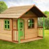 Dieses Märchenholzspielhaus mit asymmetrischer Tür und asymmetrischen Fenstern hat ein schönes Fenster an der Rückseite, so dass du immer alles im Auge behalten kannst.
